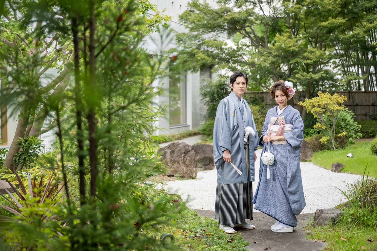 スタジオ撮影にプラスできるロケフォトオプション。 ホテル館内のフォトスポットや、風情ある日本庭園でロケーション撮影ができます。